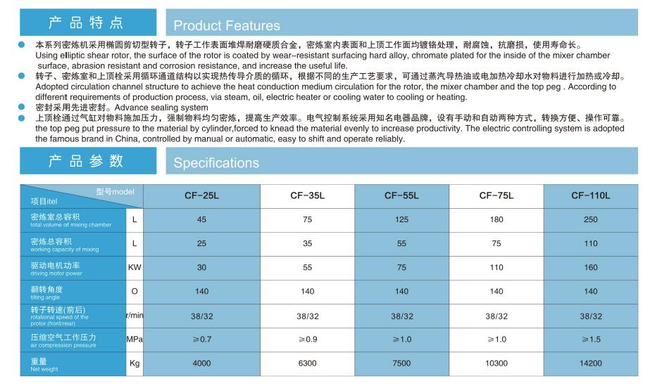 生產(chǎn)型密煉機體積小,結(jié)構(gòu)簡單.易操作.能耗少,使用維修方便等優(yōu)點.采用臺灣圖紙技術(shù),大陸生產(chǎn),進口機的品質(zhì),國產(chǎn)機的價格。 本公司生產(chǎn)的密煉機,在漏粉密封效果,和溫控方面及機器轉(zhuǎn)子耐磨度均達到行業(yè)水平。